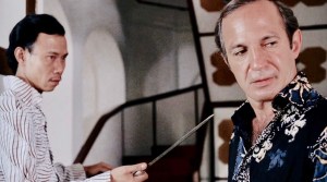* Cybill Shepherd, the director’s girlfriend at the time, got 50% of the rights to Theroux’s novel as part of her settling with “Playboy” over the magazine’s publishing nude pix of her from The Last Picture Show, where she and the director had first met. Irony having a snicker, Hugh Hefner got an Executive Producer credit for the film. Life imitating art, the dallying director’s day with Shepherd ended over his location philandering with sultry supporting player, Singaporean model Monika Subramaniam.