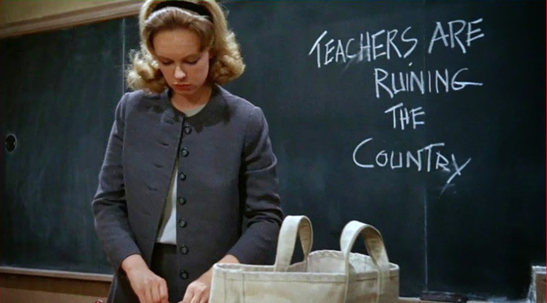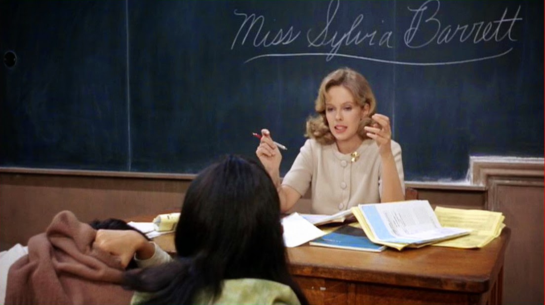 Your perpetual student enjoyed this as a 12-year-old (double-billed with The Naked Runner, a major snore), thinking it was “realistic” and accepting the offbeat leading lady (fresh from her Oscar copping turn in Who’s Afraid Of Virginia Woolf?) as one of the times-are-changing era’s “new, real-person/non glamour actors” (paging The Graduate). But seen anew a few degenerating generations on, despite good work from some in the cast, the set-up comes off as soft-pedaled on the idealized side (no-one ever saw Blackboard Jungle ? the kids, in their dress and how they inter-relate seem more like they belong to the peppy early 50’s rather than the charged mid-60s) and the “look at me being natural!” emoting from Dennis is enough to bring on an anxiety attack. Every time she allows some sliver of truthful behavior break through, she sabotages it with another quirk. Pitiful pretending to be Endearing. Perhaps in life Sandy Dennis was a lovely person, but on screen, beyond her basket case in Virginia Woolf, her most convincing performance came later in 1981’s The Four Seasons, where she was supposed to be irritating.
