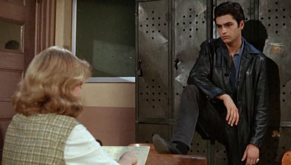 The squirming classmates, plucked from the streets: Jeff Howard (coiled bitterness), Ellen O’Mara (crushed dove), Salvatore Rasa (windbag apple polisher), Lew Wallach (class clown), Jose Rodriguez, Candace Culkin, Rutanya Alada, Bud Cort (18, debut).