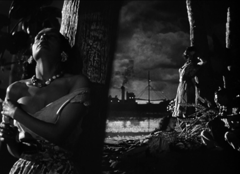 Dudley Nichols skillful screenplay meshes a quartet of O’Neill’s one-act plays centered on the sea—“The Moon Of The Carabees”, “Bound East For Cardiff”, “The Long Voyage Home” and “In The Zone”, updating them from their WW1 era setting to 1940 and a new and widening conflict. Nichols and Ford mine O’Neill’s ‘lost soul’ speeches for their essence, reducing them to brisk and bracing exchanges and elegiac pictures worth the proverbial thousand words. Ford loved the sea, understood its hypnotic pull, and shared O’Neill’s heritage-suffused Irish sense of dislocation, the great Celtic diaspora echoed in longing, bitterness and pride. The visualization of the theme of separation and the seaman’s lot—escape is also a trap, the vast expanse of the sea in paradox with the cramped confine of a vessel—was tasked to cinematographer Gregg Toland, who’d just done marvelous work for Ford on The Grapes Of Wrath. His masterful deep focus interplay of light & shadow was such an integral part of the presentation that he was accorded shared billing with the director. His compositions would influence his work on Citizen Kane and the emergence of the film noir ‘look’. Throughout, the direction and camerawork are remarkable, starting with the memorably erotic opener with the port’s prostitute contingent’s writhing invitation on a sultry Caribbean evening; hot stuff for the day. The roaring storm sequence makes splendid use of sound and special effects, and Richard Hageman’s scoring allows the haunting “Harbor Lights”, plus Ford clearly goosed him to sneak in a quick bit of “Garryowen”.