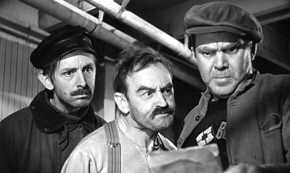 The cast excels. His star finally risen after Stagecoach, John Wayne is first-billed, employing an okay accent as ‘Ole Oleson’, the gentle, rather innocent Swedish fella who the others are determined won’t follow them back into the misery-go-round. The Duke’s fine, but he’s really just part of the ensemble, and in support of character great Thomas Mitchell as ‘Driscoll’, the unofficial leader of the rank & file crew. On deck are Ian Hunter as the drink-battered, guilt-laden ‘Smitty’; Barry Fitzgerald as ‘Cocky, a sly rumor-monger; Ward Bond in one of his best early parts as the rough & tumble ‘Yank; Wilfrid Lawson as the tough-but-fair captain; John Qualen, doing his patented Scandinavian sputter as ‘Axel’, Ole’s minder; tough-mugged Joseph Sawyer as bruiser ‘Davis’; jovially devilish J.M. Kerrigan as ‘Crimp’, the hateful shanghai scout; Mildred Natwick, in a nuanced and sensitive turn as ‘Freda’, a sad hooker working in concert with Crimp.