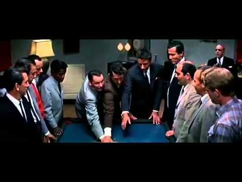 A squad of former WW2 Army buddies scheme to stage a New Year’s Eve heist of five showcase casino’s. Led by ‘Danny Ocean’ (Sinatra), they include lounge singer ‘Sam Harmon’ (Dean Martin), garbageman ‘Josh Howard’ (Sammy Davis Jr.), rich fella ‘Jimmy Foster’ (Peter Lawford), recently paroled and ill ‘Tony Bergdorf’ (Richard Conte) and ex-boxer ‘Mushy O’Connors’ (Joey Bishop). Things go smoothly…until they don’t.