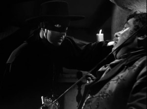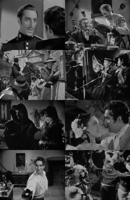 THE MARK OF ZORRO—Spanish colonial California, the late 1790s. Back from military education in Madrid, aristocrat ‘Don Diego Vega’ (Tyrone Power) finds things have changed for the worse in balmy, sun-kissed El Pueblo de Nuestra Señora la Reina de los Ángeles. His patrician father has been replaced as alcalde by a corrupt swine under the sway of a brutal capitano and his troops; the populace grieves under their yoke. Passing himself off as a frivolous and harmless fop, Diego in disguise is man-among-men ‘Zorro’, fearless outlaw-revolutionary and swordsman, determined to deal justice to the usurpers and while he’s at it win the hand of loveliest maiden in Old Los Angeles.