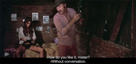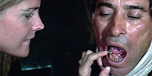 Hackman’s horse-gentle, human-skeptical veteran is a hardcase with soul (like his same year private eye in Night Moves); comrade Coburn is in relaxed devil-may-care mode (he scored one more neat ’75 part in another Americana ruckus, Hard Times). Bergen demonstrates skills equine and adversarial (her horsemanship and shotgun handling likewise demonstrated in The Wind And The Lion); Johnson gets a neat old-timer soliloquy (he was a bad guy in one of the year’s other westerns, Breakheart Pass—the whole cast was having a good day in the sun). Bannen’s a likable fair player, Vincent’s smirking hotshot his best role outside of his rowdy surfer in another man v. self & nature ode, the underrated Big Wednesday. In one of his few film jobs, (the only one where he was given billing) Arteaga makes a warm impression as the nicest fellow in the group, the vaquero plagued by a dental nightmare that’s literally encapsulated in the title.