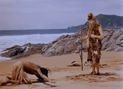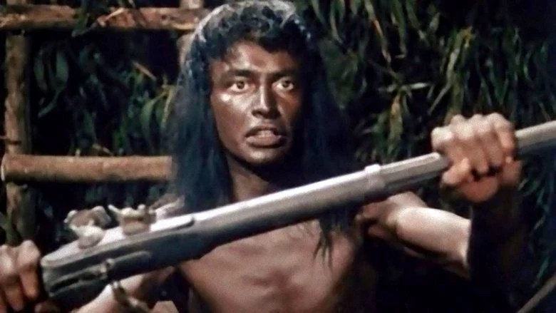 Shipwrecked on an island in the South Atlantic, Crusoe spends many years alone, fending for himself with only a dog and cat (the ship’s other survivors) for company. Salvaging goods from the wreck, he teaches himself a variety of skills, but the loneliness has him on the raw edge of sanity. Then fate provides a companion in the form of a young native (from some South American tribe) who Crusoe rescues from cannibals. At first treating this fellow (Jaime Fernandez) he calls ‘Friday’ as a servant (Crusoe’s ill-fated voyage was to purchase African slaves) he eventually acknowledges him as a trusted friend.