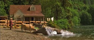 LAKE PLACID merely uses the familiar name of the actual New York lake for a title ploy; its fast-moving horror-comedy-adventure lark (with a few beheadings and torso manglings) goes chomphappy in fictional Black Lake, Maine. Patter aficionado David E. Kelly wrote and Steve Miner directed this underrated fun from 1999, which, in the manner of numerous fright-flicks with a gimmick, went on to spawn sequels, five made-for-TV knockoffs fit only for the desperate. Skip those (or use ’em to keep the kids transfixed), but if you’re in the mood for cross-genre goofiness, this kickstart provides 82 minutes of amusement thanks to a likable cast, pleasing locations and 32 feet of ravenous reptile.