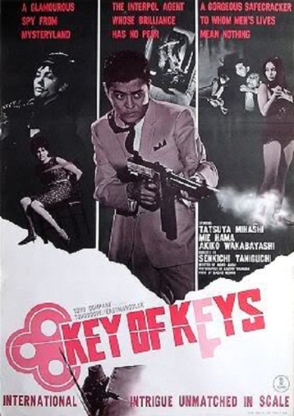 WHAT’S UP, TIGER LILY?, fondly remembered silliness from 1966, marked 30-year-old gag writer and standup comic Woody Allen’s debut as feature director. Well, sort of; what he did with this was redirecting, which consisted of rewriting, re-editing and re-dubbing a 1965 Japanese-made action comedy (4th in a series of five Bond spoofs: they beat Flint & Helm to the punch) called International Secret Police: Key Of Keys, directed by Senkichi Taniguchi, its rights having been purchased by American International Pictures for $66,000. *