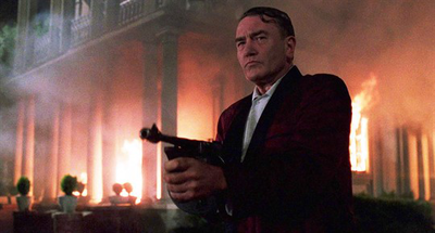 Prohibition Era. Big city crime czar ‘Leo O’Bannon’ (Albert Finney) ignores counsel of his trusted advisor, steely ‘Tom Reagan’ (Gabriel Byrne) and, blinded by infatuation with a moll (named ‘Verna’, because dames with names that begin with ‘V’ are trouble from the ‘v’ on) sets off a gang war. Despite his fealty to Leo, Tom’s two-timing with Verna. Rivalries of all sorts mingle with debts, financial and personal. Even hoods have ethics (at least in the movies). Since it’s a major American burg, the cops and politicians are in for a cut. The duds are spiffy, the autos vintage, everyone cracks wise and the ‘choppers’ never run out of ammo. We wouldn’t have it any other way.