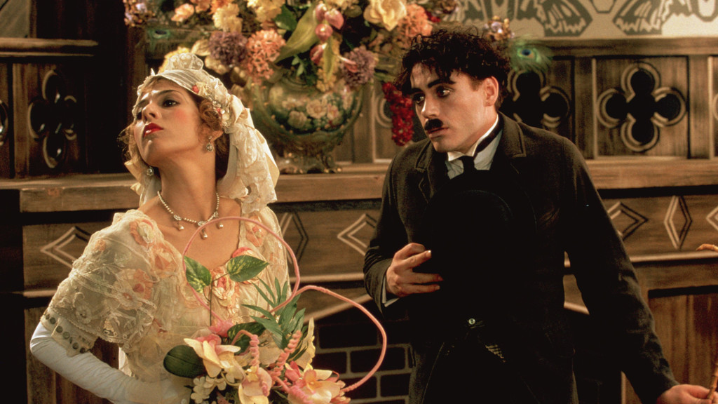 After lukewarm reviews (sniffy critics rarely liked Attenborough’s style, and his earnest decency no doubt rankled their collective sour grapes mentality) and what amounted to box-office catastrophe, he expressed regret that it wasn’t what he’d hoped: “I wish I could make it again. And do it right.”  While its framing provides just a triptych version of its subject, it’s nonetheless interesting and entertaining, occasionally quite moving, with many flavorful scenes and colorful real-life characters, dominated by the crucial ingredient everyone agreed was superlative, Robert Downey Jr.’s uncanny, transformative performance. The whipsmart but high-wired 26-year old ‘bad boy’ (he raced a rocky road to Iron Man) scooped an Oscar nomination. He should have won, but Al Pacino’s showboating in Scent Of A Woman shooed in a long-delayed token win after 20 years and seven nominations. The fine art direction from Stuart Craig (all the Harry Potter flix) and John Barry’s sensitive scoring were also up for Oscars.