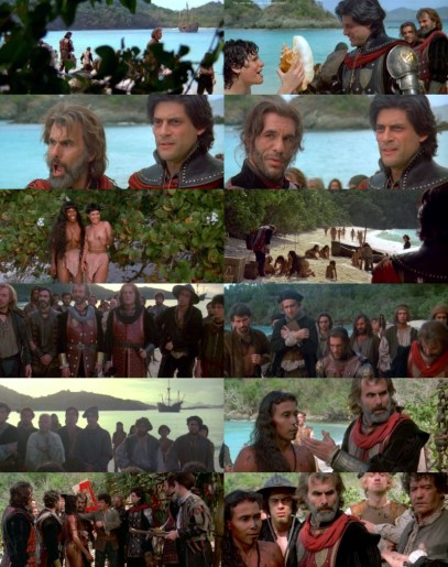 Aboard & bored or ashore & asleep: Rachel Ward (a flirty Queen Isabella), Robert Davi, Oliver Cotton (makeup has him looking kin to the Wolfman), Peter Guinness, Michael Gothard, Nigel Terry, Mathieu Carrière, Christopher Chaplin (Charlie’s son) and Branscombe Richmond.