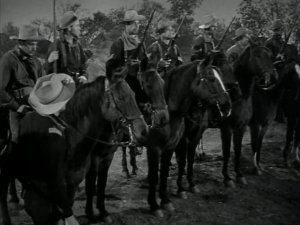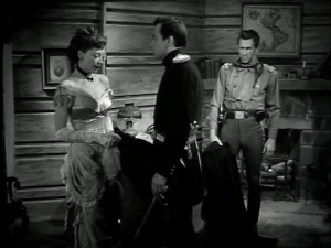 1876. Informed that their commander, George Armstrong Custer, is leading his forces into a tornado of Indians, an outlying patrol of the 7th Cavalry makes a desperate 3-day run to try and warn him. “None of us are fit to ride 50 miles, let alone 250. But we’re gonna do it. And we don’t have time to go around obstacles. We’ll go straight through them, no matter what or who they are.” Sounds rugged: just skip the thought that horses would be hard tried to make 40 miles a day let alone 83. And given the continuing dawdling to talk over their personal problems, the script (written by Charles Marquis Warren) is asking more of us than its troopers. Warren also directed (his debut in that job), with a helpful assist from cameraman Ernest Miller (he shot 17 movies in ’51 alone) seeking to pass off backlot sets and Chatsworth, California scrub brush and boulders for the Black Hills, 1,300 miles to the northeast. The kids won’t notice.