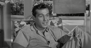 ‘Eddie Shannon’ (Mickey Rooney, 34) is a diligent auto mechanic who happens to have skill as a race car driver. Quiet and unassuming, he’s also naive to a fault and too lonely for his own good. When come-hither ‘Barbara’ (Dianne Foster, 25) flirts into his life, Eddie thinks maybe his luck has changed. Her friends ‘Steve’ (Kevin McCarthy) and ‘Harold’ (Jack Kelly) seem keen to get to know the nice little fella, too. Uh, what’s this jazz about a bank in Palm Springs?