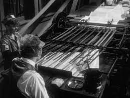 Real people and events (Brodie’s jump, the Statue to & fro, the invention of the Linotype) are mixed in with fictional folk, and the script loads up with name-dropping famous and influential icons of info gathering and dispersal. Details of the old-time printing processes are covered and done in a way that’s involving rather than coming off as dry documenting, and the cast is animated. This was the only film appearance of Mary Welch, 30, who did some stage and TV work before her untimely death in childbirth in 1958. Gene Evans, 30—later familiar to a generation of kids from playing the dad on TVs My Friend Flicka (one season and endless Saturday afternoon repeats) and then a character actor for decades—got one of his few lead roles (Fuller’s The Steel Helmet, the fun monster rampage The Giant Behemoth) and does an excellent job.