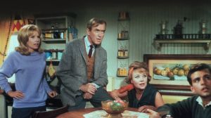 George Duning adds a pleasant touch with his music score. Featuring John Williams, Jack Kruschen, Alice Pearce (bright bit as an employment clerk), Jesse White, Charles Robinson, Percy Helton, James Brolin (as a college student). Made for $2,700,000, placing 56th in ’65 with a gross of $4,700,000. 100 minutes.