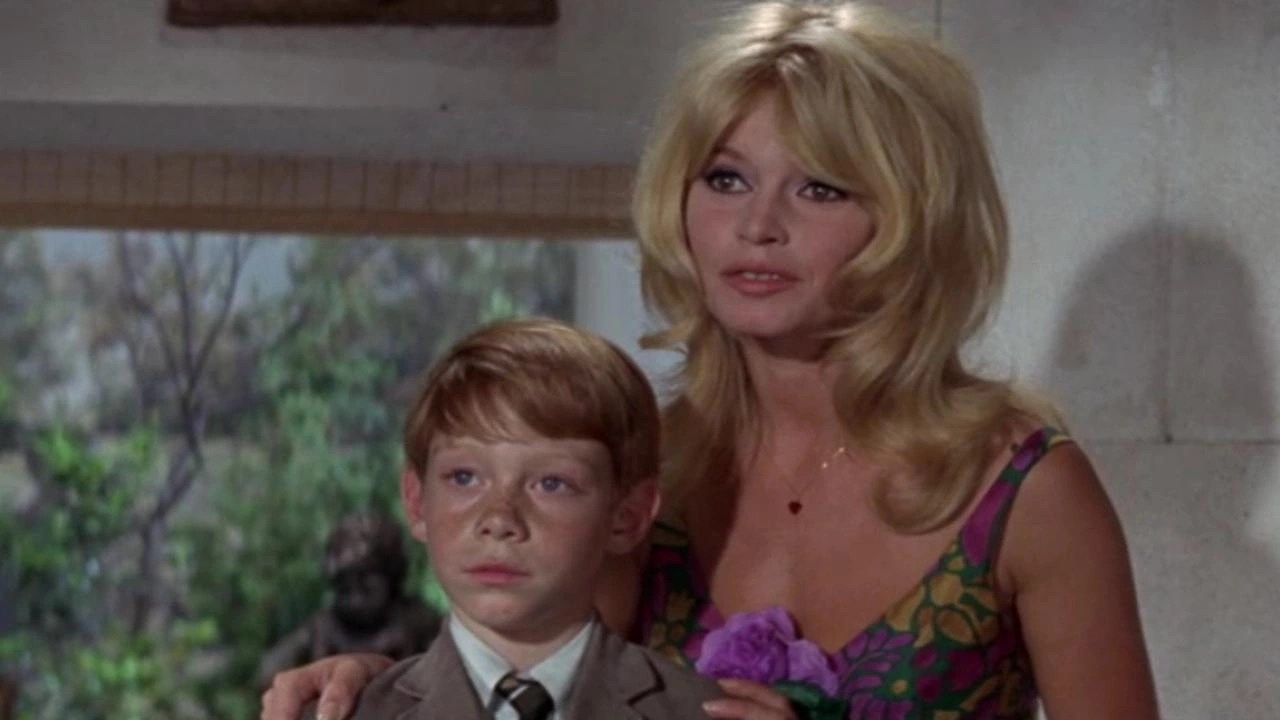 * This was going to “Erasmus With Freckles”, after the John Haase novel on which it was based. But Bardot, 30, agreed to appear only if her name wasn’t in the credits or ad campaign. So the title was tricked to notify audiences she was on view somewhere in the finished product. Regrettably, American moviegoers missed the boat on her other 1965 comedy, the spirited Viva Maria! That one (a fave) drew five times the response internationally. Stewart landed a hit that year with the Civil War story Shenandoah and a top adventure in The Flight Of The Phoenix. Billy Mumy, already familiar from several years of TV spots and a few movies, jumped further into fame that in ’65 by starting the 3-season, 84-episode run of Lost In Space.