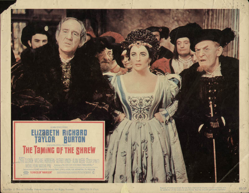 Though proven before the camera since she was ten years old, Taylor, 34, had never attempted uh, Elizabethan acting and was nervous over the challenge, jitters hardly soothed by a cast loaded with English, Irish and Welsh pros born-to-the-Bard, not least her husband. At 41, Burton’s pre-movie star career on stage had Shakespeare by the beard, but on film he’d only gone there a few times: as 19th-century thespian Edwin Booth in 1955’s Prince Of Players, in a 1960 TV movie of The Tempest and a 1964 ”filmed play’ of Hamlet. The two superstars complement one another here; after Who’s Afraid Of Virginia Woolf? it’s their most spirited collaboration. Taylor gets a tad screechy at times (like Katharina, duh), but her quiet moments are telling and the emotions showing on her face register well. Burton’s having a rarefied field day Among the choice supporting players, Hordern takes top honors; he’s marvelous, even better than he was in A Funny Thing Happened On The Way To The Forum, a brilliantly funny performance cheated of an Oscar nomination.