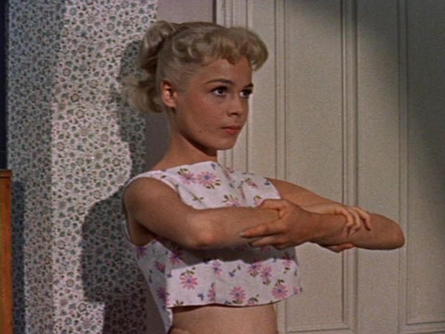 Dee, born Alexandra Zuck (that ain’t going anywhere, kid), was all over the screen that year, prominently featured in two big hits (Imitation Of Life and A Summer Place) as well as The Wild And The Innocent and A Stranger In My Arms. Her freshness along with some insightful writing make Francine/Gidget both likable and acceptably real as a character, not overdoing the “cute” part and holding her own with the more serious moments. Gabrielle Upton wrote the screenplay, Paul Wendkos directed. 95 minutes.*