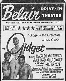 GIDGET, the boy-bewitched teenage surfer girl from Frederick Kohner’s daughter-based 1957 novel, has been played in movies and on TV by, among others, Deborah Walley, Cindy Carol, Sally Field and Karen Valentine. But the perky pint-sized heroine ultimately belongs to Sandra Dee in the 1959 opener, a sleeper success that year (63rd place, $4,300,000), instrumental not merely in fastening the winsome 16-year-old actress in her mushrooming career but by helping launch a comedy subgenre, popularize a cool sport and prod another rush of fun-seeking home-grown migrants to the blonde-bedecked beaches of The Golden State. Crazy, man!