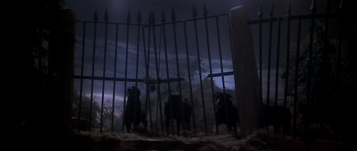 Making his bones in TV for sixteen years, with just two lowball feature credits (Salt and Pepper, Lola), director Richard Donner tapped big-time mainline with this unrelenting dive into darkness, skillfully crafted fright that set him up for fame & fortune with Superman, Ladyhawke and Lethal Weapon. He was blessed by a mighty assist from Jerry Goldsmith’s richly ominous music score, the composer’s only career Oscar victory (out of 18 nominations), proof that someone with horns runs things from below. Donner’s pacing and staging, the play-it-straight acting and Goldsmith’s fear alarm cover for the obvious logic issues in David Seltzer’s screenplay. Donner and Seltzer made a wise decision to have the various horrid assaults and deaths be situations that could happen in reality, even if the storyline tells us they’re being caused by ‘Scratch’ minions. Admittedly, the neato pinpoint padre-piercing bit pushes probability, but the hanging, the baboon frenzy, Lee’s cruel falls, the decapitation (a first-date reaction tester), and—above all—the graveyard dog pack attack rate high on the armchair grabbing list. As opposed to the successfully showy nonsense of The Exorcist.**
