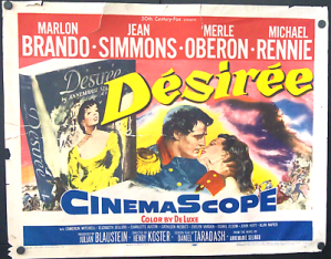 DÉSIRÉE Clary (1777-1860) was Queen of Sweden & Norway for a quarter-century, but before that, at the age of 18, she was briefly engaged to an ambitious French artillery officer named Napoleon Bonaparte. Historians parsed the Before, During & After of her romances and reign, but peasants-in-the-street knew her from a successful novel (translated into 25 different languages) by Annemarie Selinko. From that source and with cut & paste factoids, Daniel Taradash crafted his script for the 1954 movie adaptation, directed by Henry Koster.