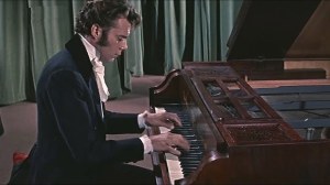 In the late 1830’s Hungarian prodigy-turned-piano virtuoso Franz Liszt (Dirk Bogarde, 38) is convinced by friends Frederic Chopin and George Sand to return to public performing. His ego inflamed by the lure of the stage, and his relationship with partner Marie d’Agoult (Geneviève Page, 31) frayed to breaking, Liszt goes on tour. He becomes a sensation and soon is romantically involved with Princess Carolyne Wittgenstein (Capucine, 31), who is married (Liszt meanwhile has children with the dissed d’Agoult) and whose husband is less-than-pleased. When marriage and divorce are contested and confounded by the Church (thanks for your concern, fellas) impulsive Franz faces a monumental choice between career, commitment and conscience. Are there any stories about famous musicians—classical, jazz, country, rock—that ever work out happily?