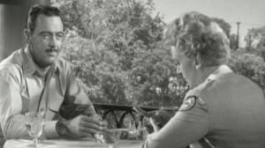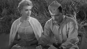 A war film that doesn’t deal with combat—there are no action scenes—but with the toll it takes on those involved, directly or by association, this was a box office success ($11,000,000 gross, #23 for the year) due to the star power of its attractive and very popular leads. Kerr held drawing power thanks to From Here To Eternity and had ’56 wins with Tea and Sympathy and The King And I, a huge smash. Holden (with a Gable-esque mustache) was on a decade-long streak of hits; he preceded this with Picnic and followed with The Bridge On The River Kwai. He excelled at portraying men with conflicting motives, but his character in this story is easily the least admirable in his resume, fitting the ‘bastard’ designation of the novel. His best scene is of Black’s scalding recall of an impoverished childhood. Ritter is excellent as always; less effective is Dewey Martin as a Marine whose over-reactive attitude isn’t well served by the script. **