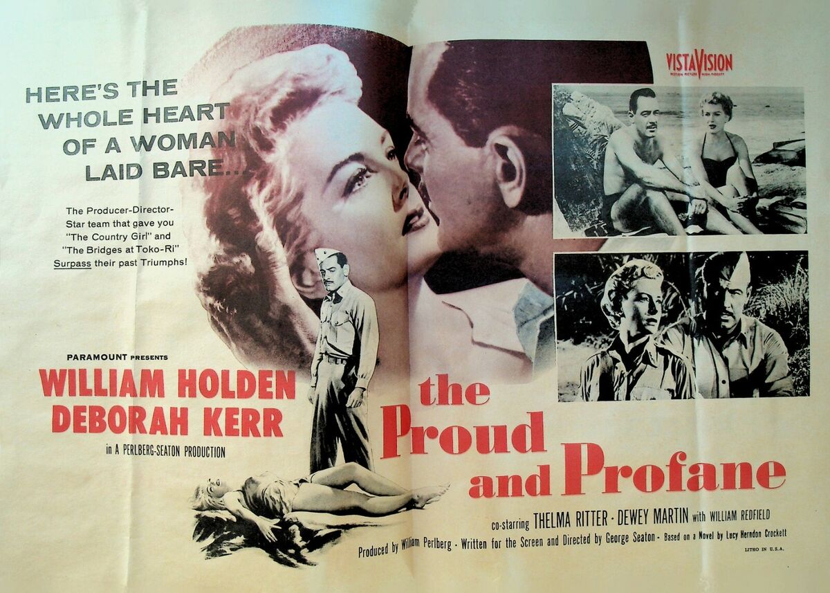 * The Proud And Profane was one of twelve 1956 releases set all or partly in WW2, joining The Man In The Gray Flannel Suit, Away All Boats, The Revolt Of Mamie Stover, Between Heaven And Hell, Attack, D-Day The Sixth Of June, The Bold And The Brave, The Man Who Never Was, The Battle Of The River Plate, Battle Stations and A Town Like Alice.