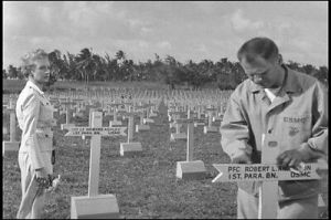 The southwest Pacific of New Caledonia was ‘played’ by extensive location shooting on St. Thomas in the U.S. Virgin Islands and in San Juan, Puerto Rico. Ample service cooperation provided men, vehicles and ships; it’s a considerable production effort. Where Seaton (and producer William Perlberg) dropped the ball is making the budgetary (or just dumb?) call to shoot in black & white when the backdrops beg for color. Granted, cinematographer John F. Warren (The Country Girl, South Seas Adventure) does crisp work in VistaVision but the glory of the locales is left in the lurch. Shades of Prince Of Foxes, Roman Holiday or In Harm’s Way.