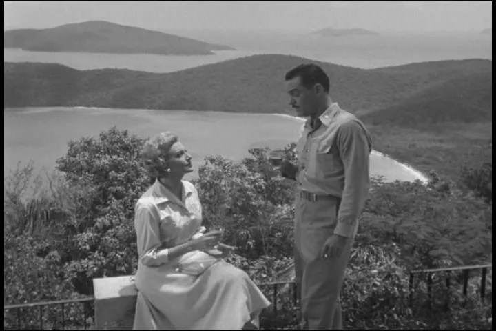 The island-hopping campaign against Japan uses the French territory’s capital of Noumea as a base. Among the Red Cross workers tending to the troops is fresh volunteer ‘Lee Ashley’ (Deborah Kerr), whose husband was killed in the bitter struggle for nearby Guadalcanal (858 miles away, next door in the Pacific). Her emotional vulnerability is targeted for seduction by callous ‘Colin Black’ (William Holden), a harsh-as-hell Marine Colonel who isn’t much easier on the fragile widow than he is on his battalion of Raiders. Though cautioned by her savvy supervisor ‘Kate Connors’ (Thelma Ritter), Lee allows herself to fall for the domineering officer, and he’s not above lying about knowing her late husband to get what he wants. It’s war: people get hurt.