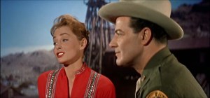 * Victoria Shaw, 24 at the time, was a beautiful Australian model whose promising movie career (a plum part in The Eddy Duchin Story, then leads in this, The Crimson Kimono, Because They’re Young and I Am At The Stars) faded into TV gigs and motherhood (she was married to Roger Smith). Sadly, she passed away at just 53 years of age.