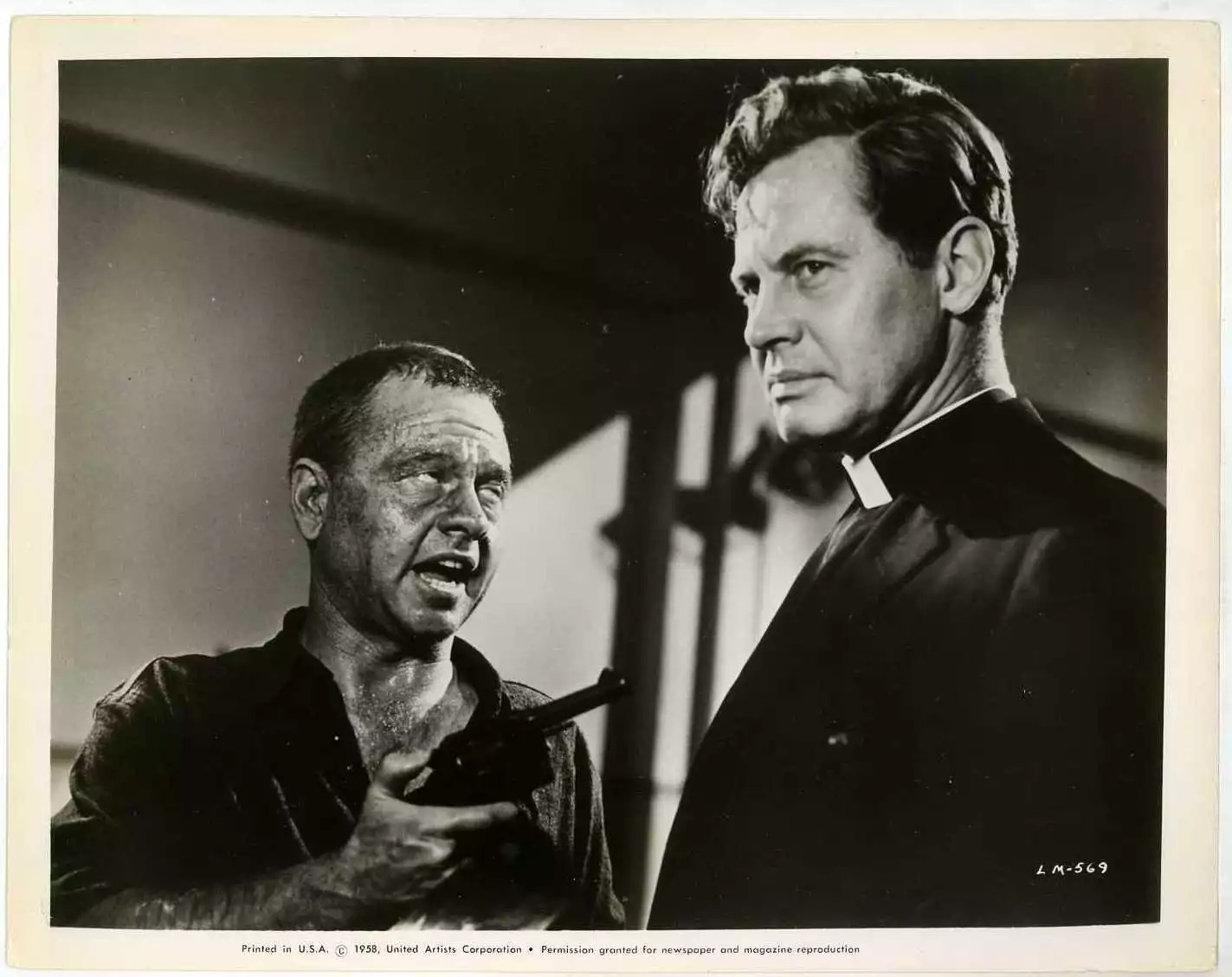 Mears & Mick’s wrath & reckoning is aided & abetted by the sweaty emoting of Clifford David, Frank Overton (priest who needs to wise up), Donald Barry (sadistic guard asking for it), Ford Rainey, Johnny Seven, Clifton James, Frank Conroy (demoted from leading the lynch mob of The Ox-Bow Incident), Michael Constantine (debut) and Milton Selzer (debut).