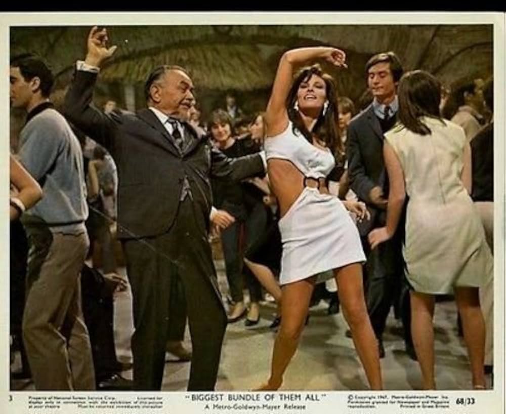 Somehow Eric Burdon & the Animals were coaxed into singing “The Biggest Bundle Of Them All” (it’s bad) during a disco scene where Raquel dances the Watusi with Robinson. Crazy, man! Amiable, slow-paced, the show ultimately overstays at 105 minutes, and the US box office rank was a weak 145th.