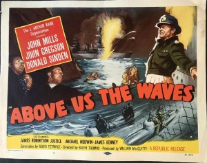ABOVE US THE WAVES, another of the many well-made, stiff-upper-lip WW2 movies Britain rolled out during the 50’s, and one of those based on some derring-do that was actually daring & done. In 1955 it joined with fellow fact-based Brit salutes The Dam Busters, The Cockleshell Heroes and The Colditz Story, this one detailing the perilous, sacrificial attempts to put one of the Third Reich’s mightiest battleships out of action. *
