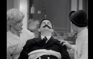 Four stowaways on an ocean liner create havoc among the flustered crew and affronted passengers until the ship docks in New York City, whereupon the three wackos (Groucho, Chico and Harpo) and the one who’s there to be a (frankly dullsville) straightman (Zeppo) end up first at a party and then at a barn, embroiled with dueling gangsters and two of the ladies they’d badgered on the ship.