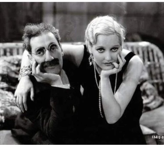 * Echoes—-Groucho tells Thelma Todd, “You’re a woman who’s been getting nothing but dirty breaks. Well, we can clean and tighten your brakes, but you’ll have to stay in the garage all night“. In 1935 Todd was found dead in her car inside her garage with the engine running. Whether it was suicide, accident or murder was never solved to satisfaction. She’d been married to an abusive hood named Pat DiCicco, associate of Lucky Luciano. She was 29.