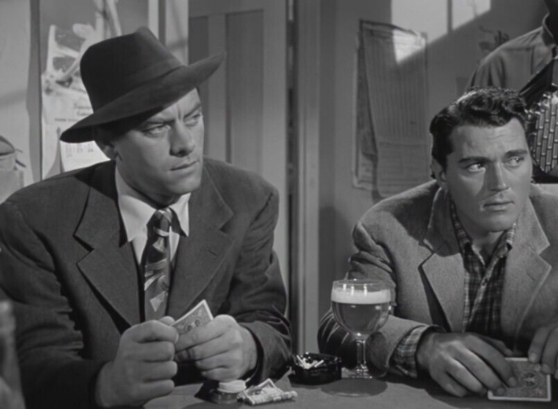 Everyone scores. Scott is laid back but deceptively so, in a different sort of role for him, hero business downplayed to fit the situation. Raines is once again alluring and just a little shady. It’s a nifty distrust competition between vaunted sneer-experts Ireland and Kennedy, while Courtland, 22, often sounds quite a bit like Henry Fonda and dependable cuss Edgar Buchanan growl-croaks like he’s doing an Edgar Buchanan impression. Renowned bluesman White, 34, adds offbeat counterpoint with his guitar riffs (right after this he was blacklisted by the McCarthy ghouls) and Stevens—who was cavalierly unbilled, among his 240 credits between 1915-1961 usually consigned to tiny parts as a desperado of some sort—has a fairly good, equal-footing role for a change.