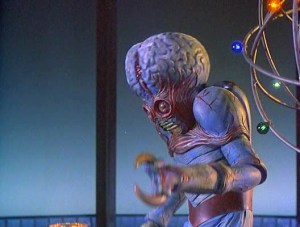 With Lance Fuller (Metalunan hardass ‘Brack’, bad cop to Exeter’s good one, with an even loftier forehead), Russell Johnson (‘Dr. Steve Carlson’—don’t overly tax your puny human brain coming up with generic character names), Douglas Spencer (‘The Monitor’, sees all, demands more), Robert Nichols (‘Joe Wilson’, again with the names, as Cal’s assistant who helps him put together the interocitor’s “2,486 parts“), Karl Ludwig Lindt (‘Dr. Adolph Engelborg’,”of Munich“) and Richard Deacon (as a pilot–don’t worry, folks, but the plane is being flown by Richard Deacon).