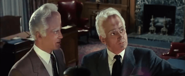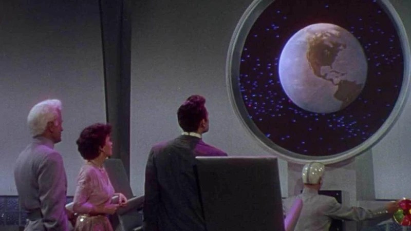 With Lance Fuller (Metalunan hardass ‘Brack’, bad cop to Exeter’s good one, with an even loftier forehead), Russell Johnson (‘Dr. Steve Carlson’—don’t overly tax your puny human brain coming up with generic character names), Douglas Spencer (‘The Monitor’, sees all, demands more), Robert Nichols (‘Joe Wilson’, again with the names, as Cal’s assistant who helps him put together the interocitor’s “2,486 parts“), Karl Ludwig Lindt (‘Dr. Adolph Engelborg’,”of Munich“) and Richard Deacon (as a pilot–don’t worry, folks, but the plane is being flown by Richard Deacon).