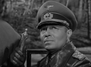 Rommel’s widow Lucie Marie acted as technical advisor. Smaller roles are loaded with veteran or soon-to-be-familiar faces: Everett Sloane, George Macready, Richard Boone, William Reynolds (as son Manfred Rommel), Eduard Franz, (as Claus von Stauffenberg), Robert Coote, John Hoyt (as Field Marshal/Hitler lickspittle Wilhelm Keitel), Scott Forbes, Sean McClory, George Nader, Dan O’Herlihy, Ivan Triesault, Peter van Eyck, Philip Van Zandt, Carleton Young.