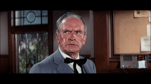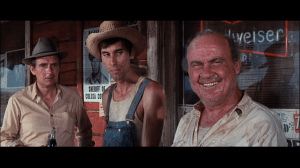 ‘Colusa County’, somewhere ‘down South’. Sheriff ‘John Little’ (George Kennedy) has been defeated for reelection. Fair’nuff, ceptin’ the new man happens to be ‘Jim Price’ (Jim Brown) and while Jim may be the right man for the job he’s the wrong color for the sweltering burg’s spite-raised gaggle of racist rednecks. Little’s a decent guy, and so’s the gruff-but-fair Mayor-since-Vicksburg ‘Jim Parks’ (Fredric March), but the deck is otherwise stacked with sweaty bigots, braying bitches and dimwitted brutes, both white and black. An equal-opportunity place to move the hell away from.