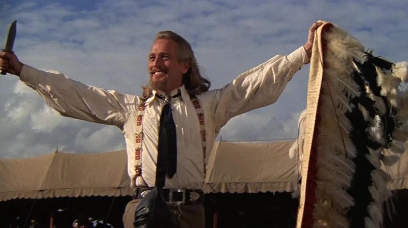 1885, out West. Famed scout, hunter and soldier William F. Cody (Newman) introduces legendary Sioux medicine man Sitting Bull as a new addition to his traveling Wild West show, which includes among its cast sharpshooter supreme Annie Oakley (Geraldine Chaplin). Cody’s success as a showman owes a great deal to pulp writer Ned Buntline (Burt Lancaster) who turns up for sage-brushed commentary from the sidelines.
