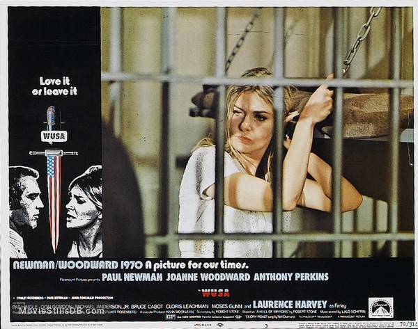 WUSA, an interesting, frustrating dud, is both ahead of its time—keyed on the slow-moving coup of right-wing media manipulation, radio in this instance—and perfectly of its time as one of the waterfall of anti-Establishment pictures that pleased or riled audiences in 1970. If nothing else it showed that if conservative John Wayne could shoot himself in the boots with rah-rah nonsense like The Green Berets then liberal Paul Newman could mess up a message with this jumbled gumbo. Having aced directing Paul’s classic Cool Hand Luke, Stuart Rosenberg was assigned. Robert Stone’s screenplay was based on his novel “Hall Of Mirrors”. Newman-co-produced as well as starred, with wife Joanne Woodward and a well-picked supporting lineup.
