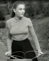 Chandler is fine, but his character is stuck with the foolishness of the dog-ate-my-homework screenplay and as leading man he’s saddled with supporting players who are either cardboard bland and sappy or underused/misused. Ever-snarling Alex Nicol (the poor man’s Arthur Kennedy) is a constantly insubordinate sergeant who has a pre-war grudge against Chick. Dopey-grinned Charles Drake (the poor man’s Van Johnson) is a hopeful author who manages to find a prominently stacked ooh-lah-lah named–wait for it–‘Antoinette Dubois’ (Jacqueline Duval, 19) to play hide-the-chocolate bar with. Conveniently the red-blooded guys also cross paths with two babes from the Red Cross (talentless starlets Judith Braun and Cindy Garner), and—oh, yeah, the war—have some brief firefights with those break-spoiling fellas from the Wehrmacht, who in true B-movie fashion, are easily disposed of—“just like real life, huh, Dad?”