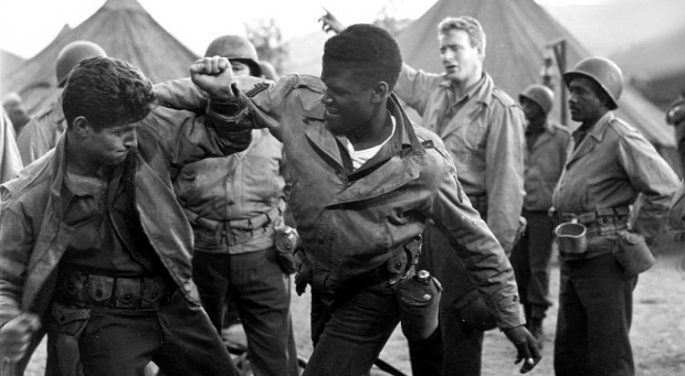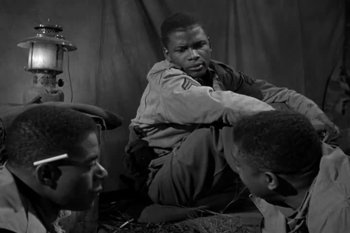 At least director Budd Boetticher (needless to say, not one of his better films) and screenwriter John Michael Hayes (who would go on to write some winners) allow three African-American actors to wedge in to represent the 75%. Singer-pianist Bubber Johnson gets the jolly soul angle (https://www.uncamarvy.com/BubberJohnson/bubberjohnson.html—a funny, poignant piece) while Davis Roberts has the gentle-guy-talking-about-home-and-who-therefore-must-get-killed role (familiar face, checked his credits to find I’ve seen him in 16 movies, and a slew of TV shows). The biggest part in the trio, and the one that gives the movie more notice than it otherwise would receive is handled by Sidney Poitier, 24 and on his gradual, steady, determined climb to the top. As the one suffers some prejudice (go figure) he makes it thru the part and film with the now-cherished Poitier dignity.