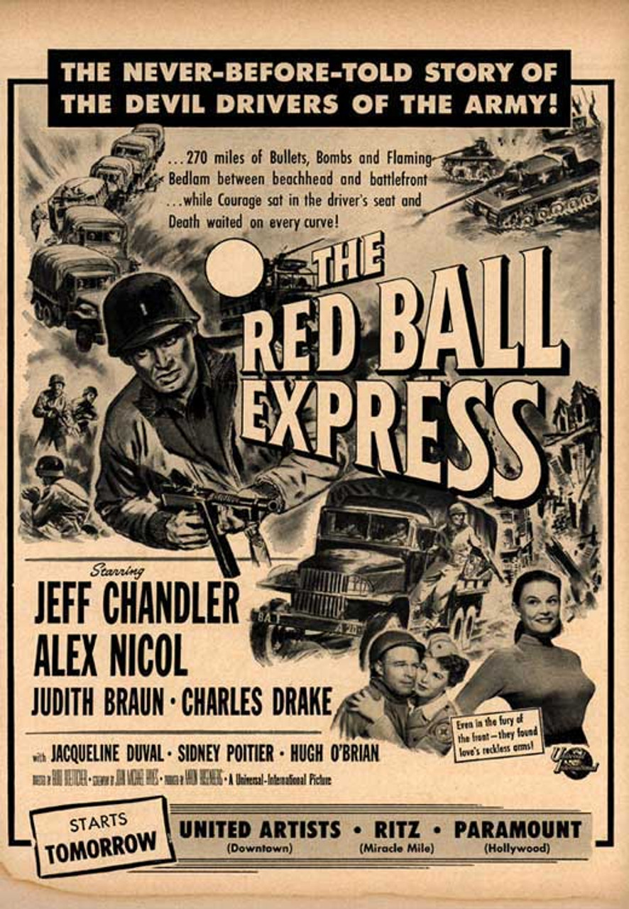 RED BALL EXPRESS deserved a movie. But not this one. After 1951’s barrage of 18 war movies, 1952, with the United States mired in Korea, unloaded a mere six, one of them this salute to the US Army’s hell-for-leather WW2 truck convoy epic across France in 1944. ‘Salute’ is being polite: for this rah-rah nonsense a more apt description is ‘sucker-punch’.