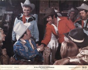Reynolds decade long string of down-home hee-hawin’ traced his rise & fall as a bankable box office star, and his publicly perceived persona that ran from winning to pitiful. W.W. was preceded by 1973’s White Lightning and followed by Gator in ’76, then King of the Roost Smokey And The Bandit in ’77. 1978’s Hooper counts as a stunt cousin. The D-cline starts in 1980 with Smokey And The Bandit II, followed by The Cannonball Run in ’81. 1983 hacked up Stroker Ace and Smokey And The Bandit Part 3, then ’84 dropped Cannonball Run II. Though they’re Southern-set, we don’t count Deliverance (1972) or The Best Little Whorehouse In Texas (1982).
