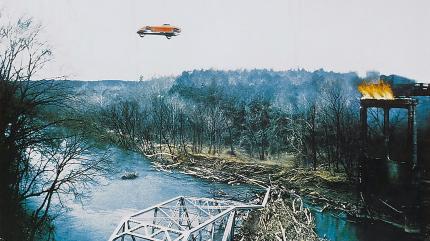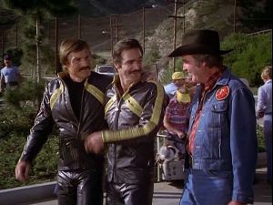 That’s pretty much it, just a ‘Saturday night the movies’ kind of flick, not be taken with any sort of seriousness. The director was veteran stuntman Hal Needham, who cut his debut director teeth (the one’s not knocked out) on Burt’s megahit Smokey And The Bandit. They’d whale on four more palfests (Smokey And The Bandit II, The Cannonball Run, Stroker Ace and Cannonball Run II) and for fans of the ilk it’s a toss-up whether the first Smoky or Hooper is top hound dog. We’re not nuts about any of them (fifteen beers would help), but if it would save Western Civilization (or could locate a field with a Sally in it) we’d pick Hooper. An affectionate proud-to-be-crazy ode to the wildass profession of the professional risk takers who take the falls for the ‘do not fold, spindle or mutilate’ stars, it’s got a semblance of a story, the able cast plays it straight, and the wacky stunts are fun, especially that drive-under-collapsing-smoke stack situation.