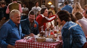 It was scribbled by Thomas Rickman (Everybody’s All-American) and Bill Kerby (The Rose). The big bar-renovating fight is one of those comic saloon brawls that deliver human and property damage that in real life would be devastating, and of course ends with everyone becoming hug-buds and getting sloshed. Klein’s director-as-dick was based on Peter Bogdanovich, who Reynolds had put up with for the tanker At Long Last Love. An acting coach as well as a character ace, James Best was always a fave from way back, ditto Our Man Keith (“Why spoil the beauty of a thing with legality?”). In the days before he tragically self-destructed, Vincent is a natural fit for the prove-himself part: that year he had his career best role in the surfing epic Big Wednesday. Sly fox Sally is mainly there to be fetching: mission accomplished. She followed this lightweight be-with-boyfriend gig with serious thesping as Norma Rae. Burt is Burt, and in this one, that’s okay.