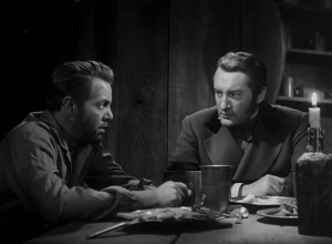 The main male victims are, in order, Gene Lockhart, 55, as older lumber baron ‘Isaiah Poster’, wealthy and cagey; Louis Hayward, 37, as his wimpier son ‘Ephraim’; and George Sanders, 40, as a logging supervisor ‘John Evered’, who replaces used-up Ephraim in the line of desire/ire. Lockhart is customarily fine as the most unsympathetic. Hayward is stuck with the weakling role. Sanders is halfhearted as the most supposedly sensible of the three: she seduces/conquers him in the woods, during a thunderstorm, with a lightning-zapped tree flaming in the background: incidentally,this surefire, “Okay, I give” situation, while dangerous, comes highly recommended. All of the high-calorie scenery chewing is backed by a florid music score from Carmen Dragon—gotta love that name! *