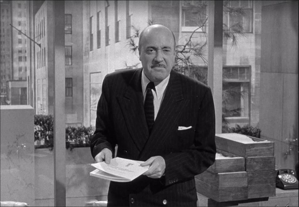 The smug boys club at the top of billion-dollar ‘International Projects’ have it made, snowing stockholders with b.s. while fleecing them to further stuff their own already packed pockets. Then ‘Laura Partridge’ (Holliday), a ‘nobody’ with a mere ten shares, shows up a meeting and flummoxes the suited ones to such an extent that they resort to hiring her in order to silence her. But Laura has wiles behind her smiles, and she finds an ally—and maybe more—in ‘Ed McKeever’ (Paul Douglas), the company founder and former chairman who has resigned to go to D.C. to work for the Pentagon. Like Laura, Ed is honest. Like Laura, Ed is single.